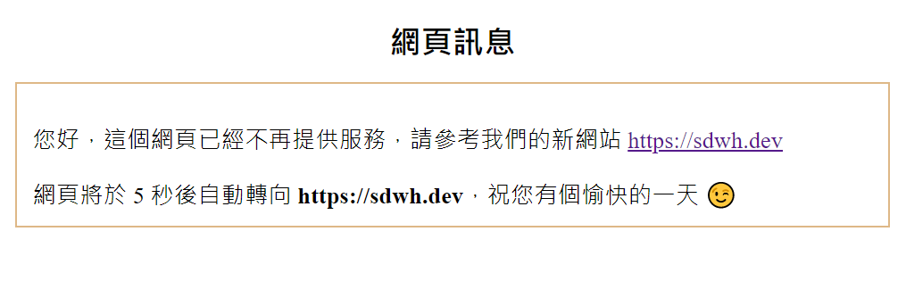 <strong>https://sdwh.dev</strong>,祝您有個愉快的一天 😉