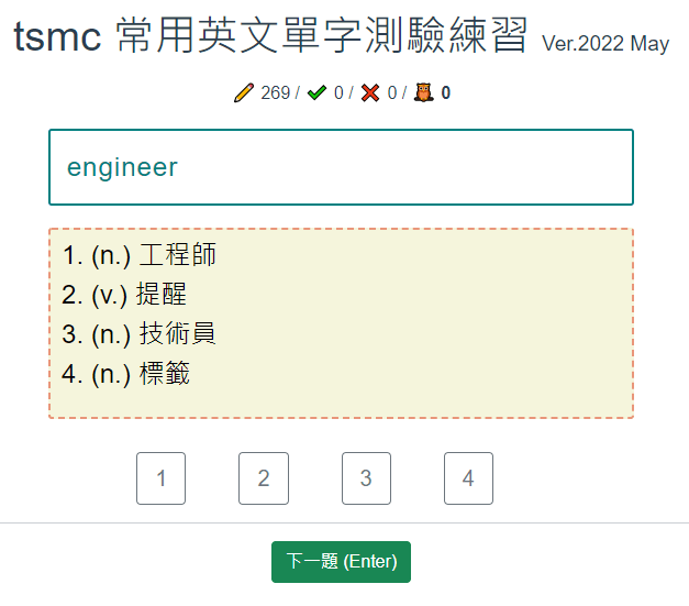 TSMC 常見英文單字測驗練習 Vue Multiway Buttons