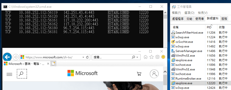 說明如何使用 Netstat 確認伺服器上連線進出的資訊,以及判斷使用該連線的 Process 😎