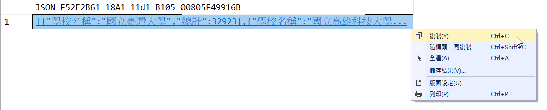 本次使用的測試資料 JSON 來自於 OpenData.gov.tw 上的 110年大專院校校別學生數,資料 SAMPLE 如下: