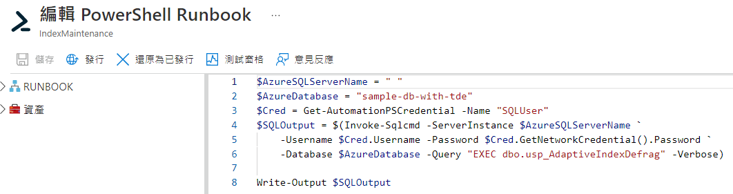 為連動受管理的資源,可能會需要帳戶身分,可以儲存在 Automation Accounts 的 Credential 當中。