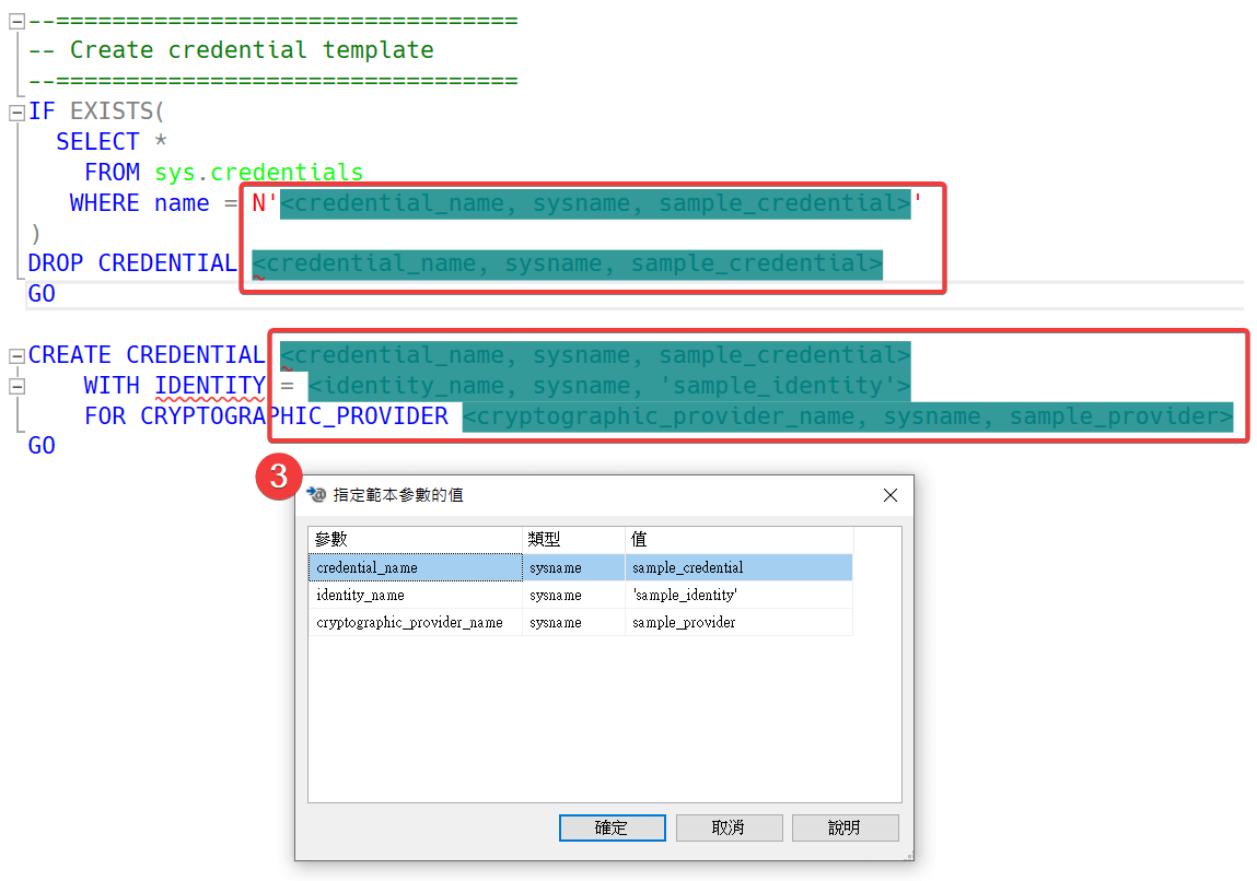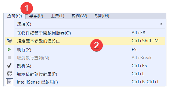 選擇範本後,在查詢編輯中選擇 查詢 頁籤,開啟「指定範本參數的值」,或者使用快捷鍵 Ctrl + Shift + M
