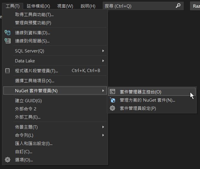 首先由 Nuget 進行下列的相依元件安裝,Proxies 不一定需要安裝,如果需要使用 UseLazyLoadingProxies 則必須安裝。