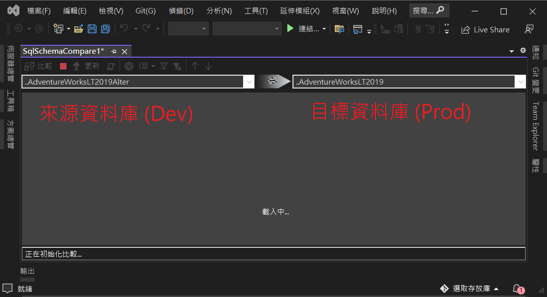說明如何使用 Visual Studio SSDT,來比較 SQL Server 不同資料庫的資料表 Schema,從而將開發環境的資料庫異動更新到正式環境的資料庫 😀