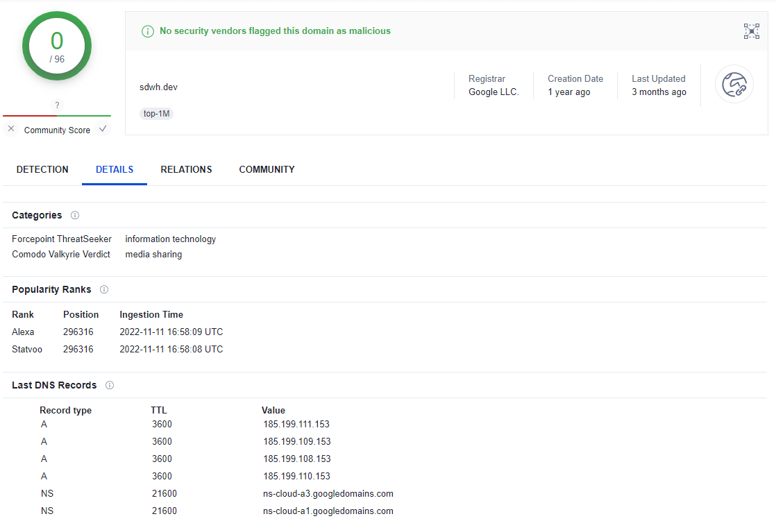用於識別檔案室否存在病毒的線上工具 Virustotal,也可以用於偵測子網域以及網域的信任程度。