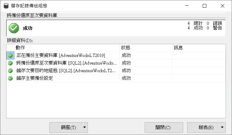 Log Shipping 的設定方式 By Database,本次示範以 AdventureWorksLT 進行示範。