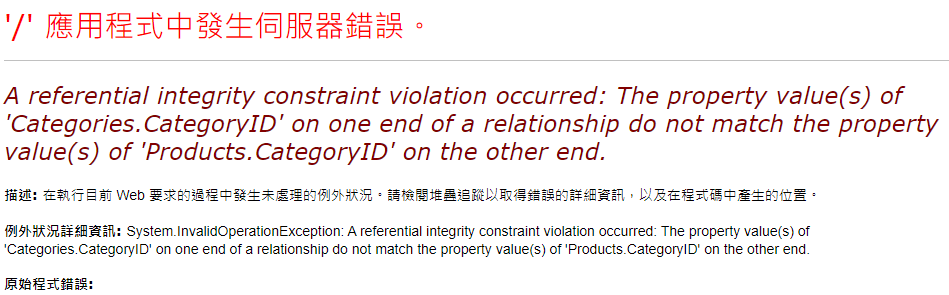 需要注意目前的設定方式,如果變更 Product 所屬的 CategoryID 就會發生錯誤。