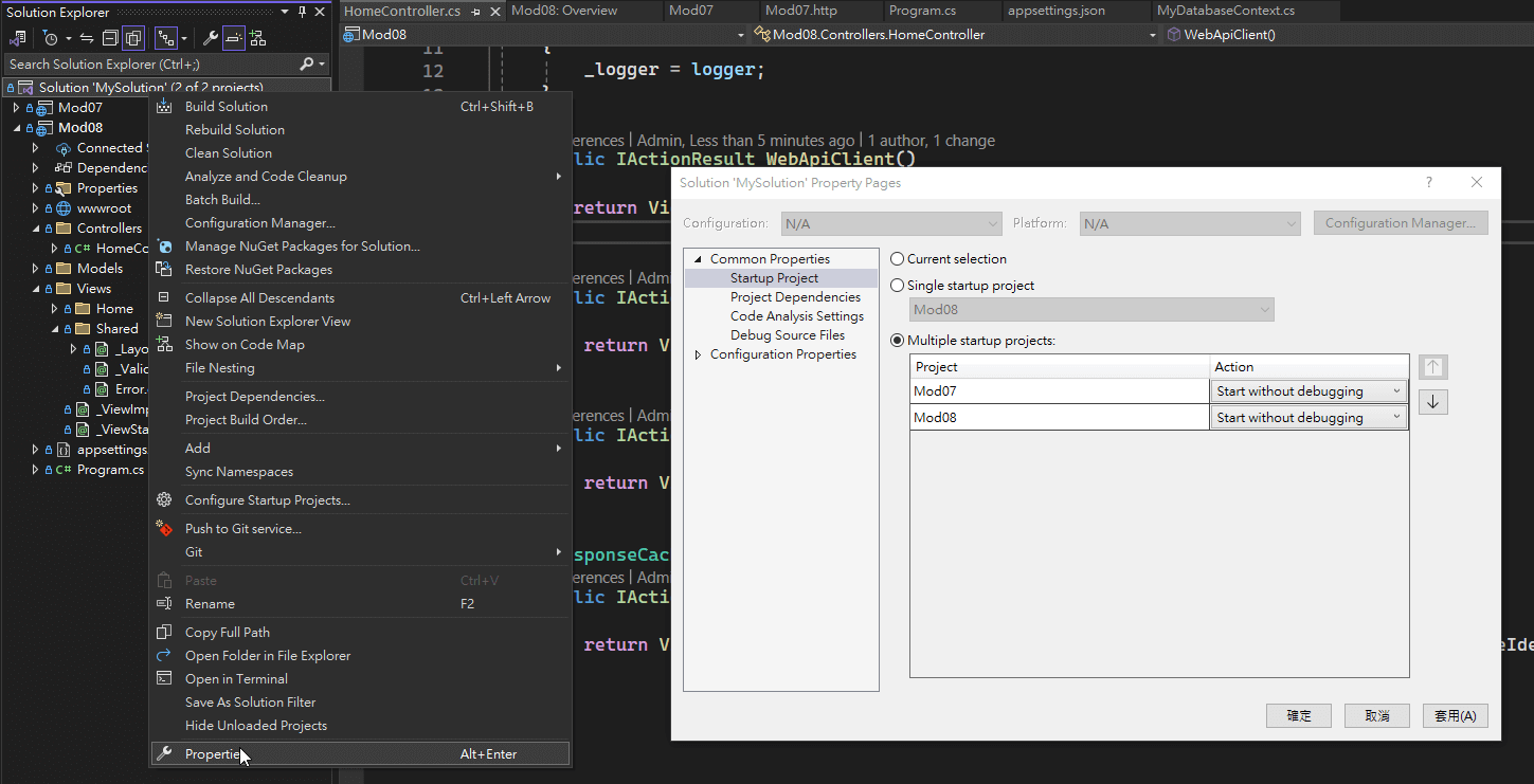 And setting multiple startup projects, let the WebAPI and WebApp run at the same time.