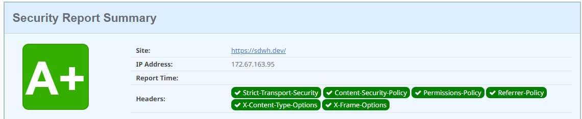 本次使用的 A+ 等級的 HTTP Headers 設定如下: