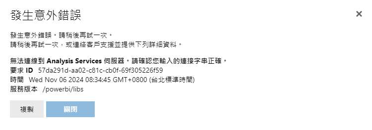 Power BI Report 使用 DirectQuery 方式連線的報表會發生錯誤,使用匯入資料的方式則不會發生錯誤。