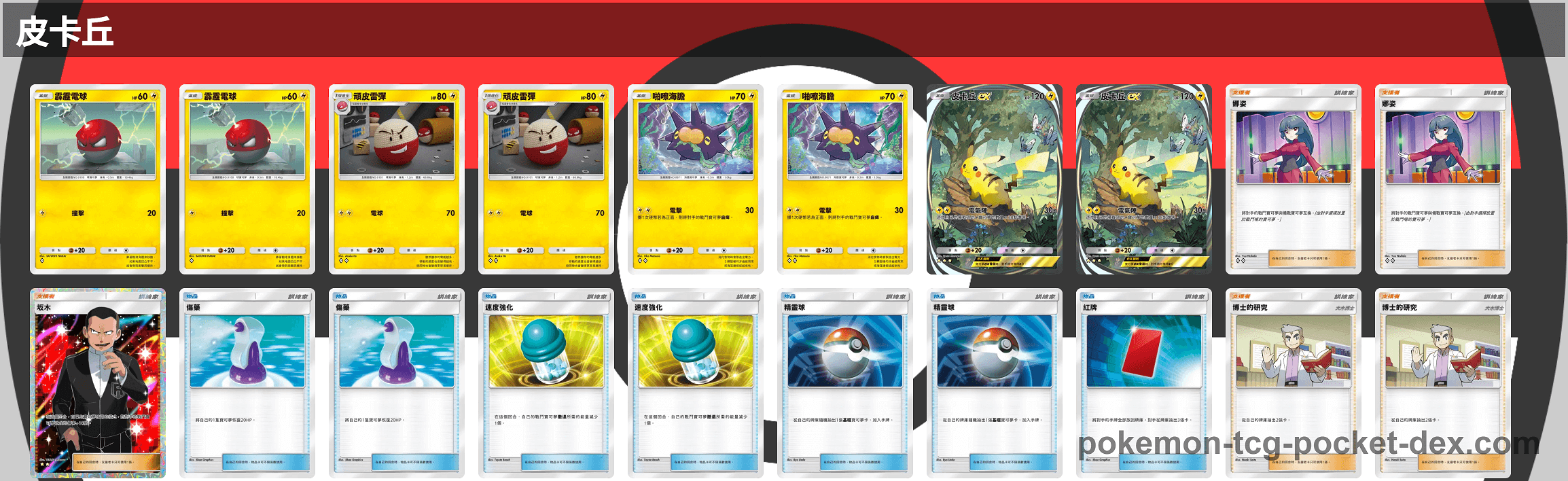 接著改抽皮卡丘卡包,有兩張皮卡丘EX後組速攻排組,時站上很需要後手先存能量,沒有閃電鳥的情況下,搭配閃電斑馬與啪嚓海膽。