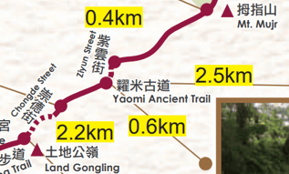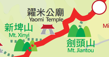 The “糶米古道” is a route that passes through the sixth section of the Taipei Grand Trail. The character of “糶” sometimes you might hear the pronunciations “Tiao" or “Di." Upon further investigation, the correct pronunciation is “Tiao”, as “糶” refers to the selling of rice, which can be inferred from the character construction, combining “出” (to go out) and “米” (rice).