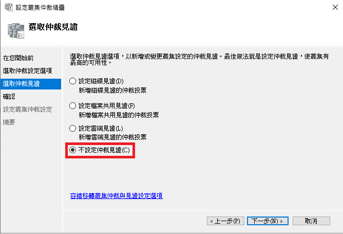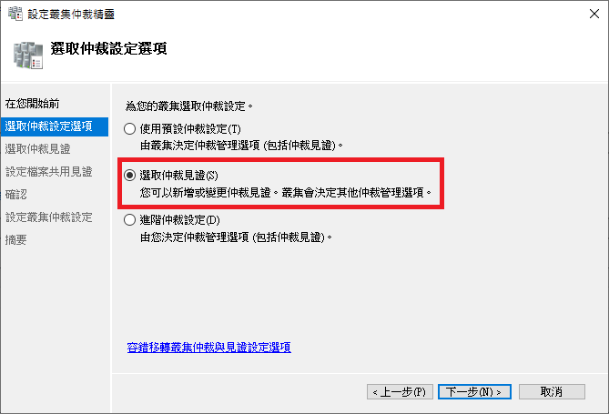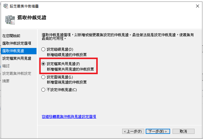 Windows Server 調整叢集仲裁的檔案共用見證路徑方式