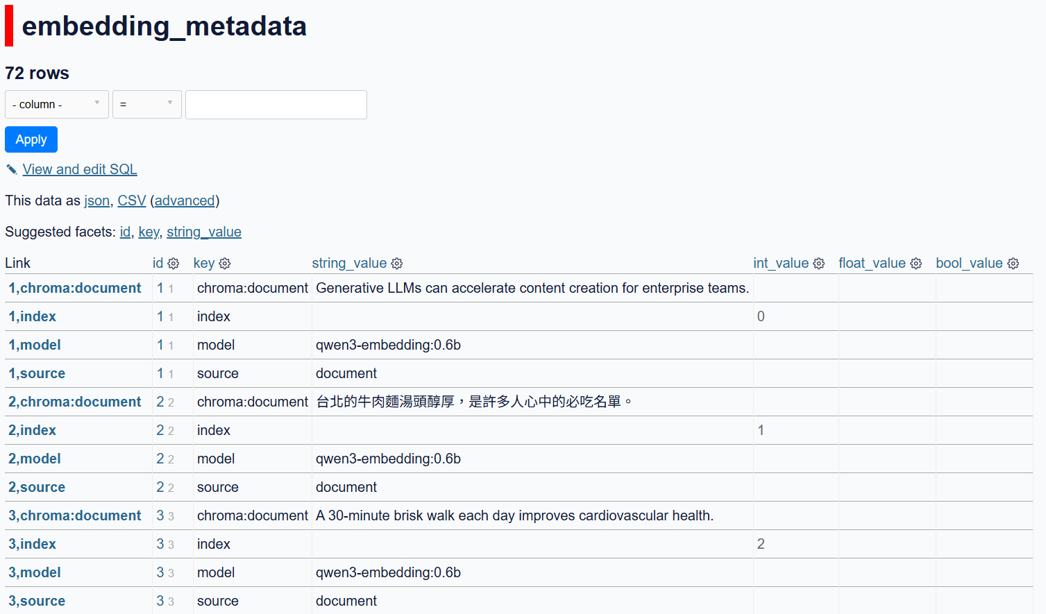chromadb 的 persistent 是搭配 sqlite 將資料儲存在本機,而企業化的應用會考量將 metadata 及向量資料分開存放,metadata 儲存在 RDBMS,向量資料可以儲存在 chromadb 搭配的 Volume。